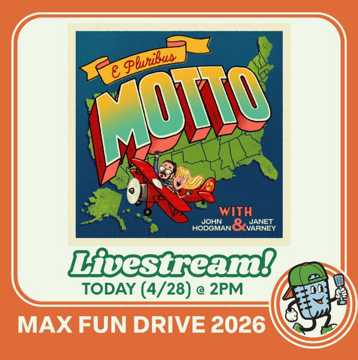 Today’s the day! Come hang out on Instagram Live with Janet and John as they answer your emails about the states they’ve discussed in season 3 so far. Plus a lot of general nonsense for the #MaxFunDrive.