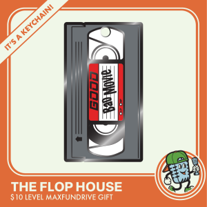 - The Flop House: A VHS tape with “Good Bad Movie” on the label.