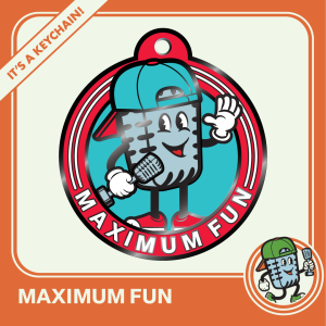 - Network Pin: The MaxFunDrive 2026 mascot (an anthropomorphized old-fashioned microphone, smiling and wearing a backwards baseball cap). Text beneath him says “Maximum Fun”.