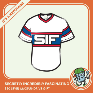 - Secretly Incredibly Fascinating: A Chicago White Sox-inspired t-shirt (white, with blue and red stripes) with the text “SIF” on the shirt.