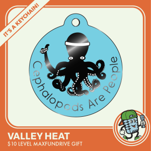 - Valley Heat: A black, sweatband-wearing octopus and the text “Cephalopods are people”.