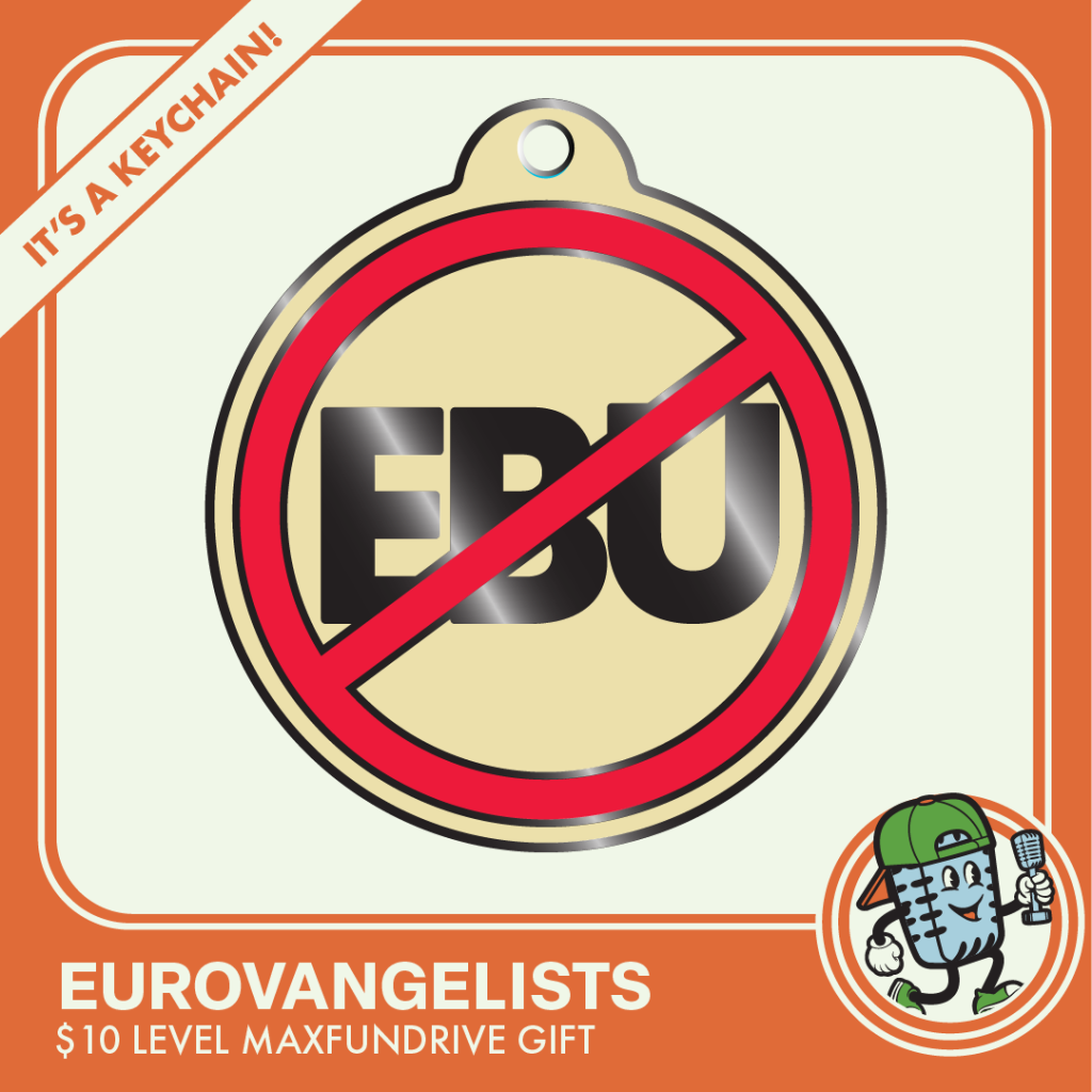 Eurovangelists: “EBU” (the European Broadcasting Union) in black text over a tan background. A large red “cancel” symbol crosses out the text.