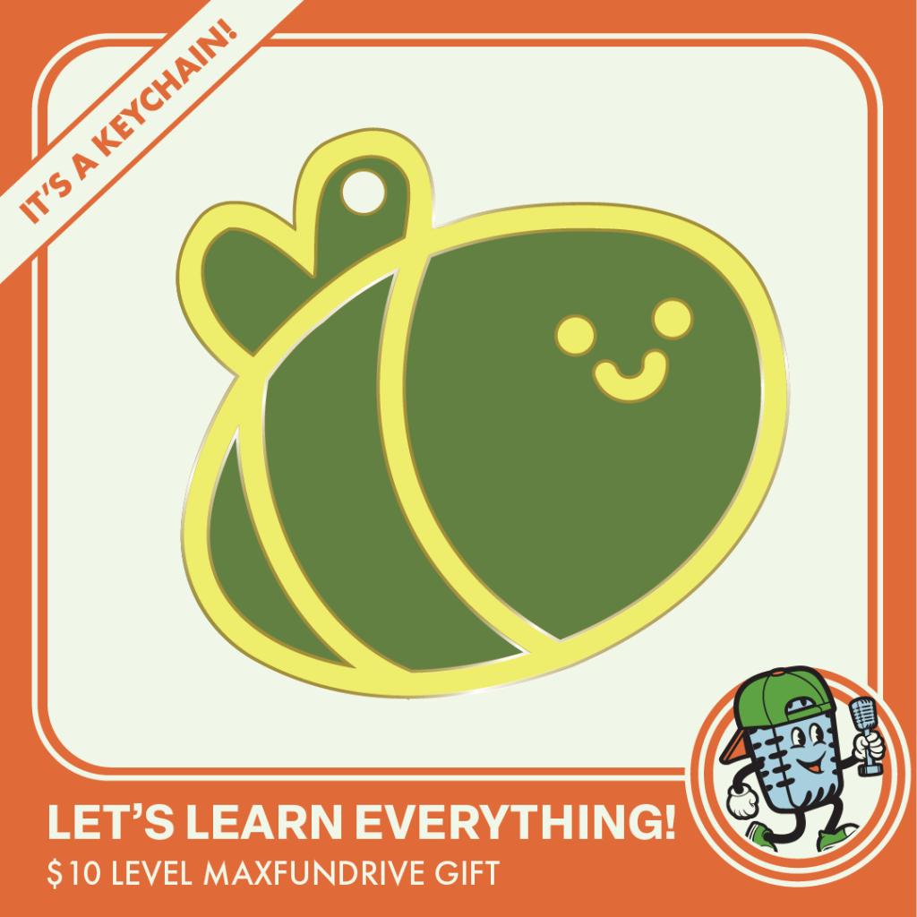 Let’s Learn Everything: A smiling gold-and-green bee in a simplified, cartoon-y style.