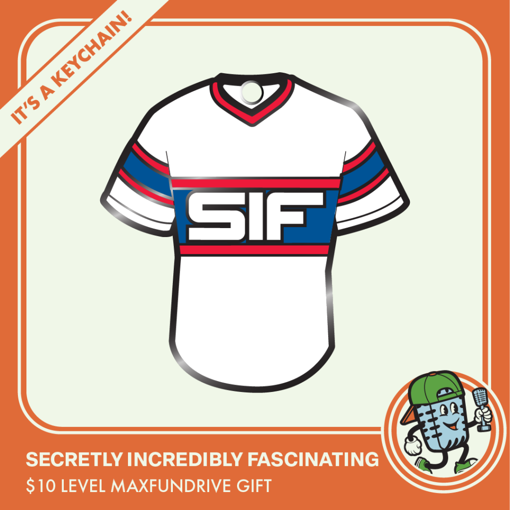 Secretly Incredibly Fascinating: A Chicago White Sox-inspired t-shirt (white, with blue and red stripes) with the text “SIF” on the shirt.